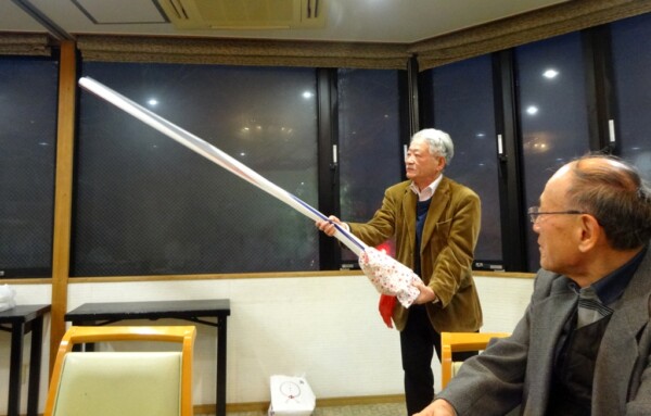 北原副会長(高23)がマジックを披露。袋から長いストローを出したり、ハンカチをスティックに変えたり。鮮やかな技で楽しませてくれました。次回は他のネタをとの事で、お楽しみを。