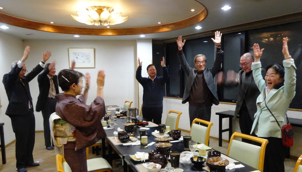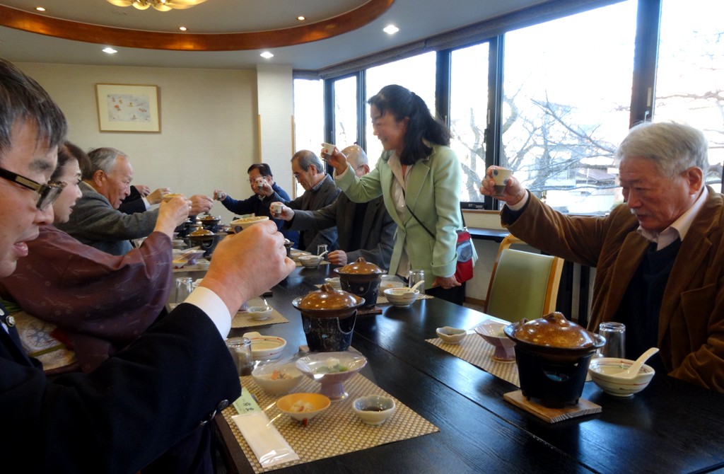 長谷川会長(高22)の音頭でカンパ~イ。お花見なら最高の部屋ですが、桜は暫く先ですね。