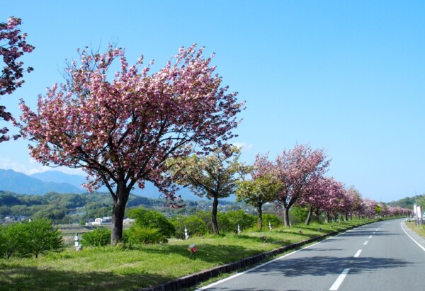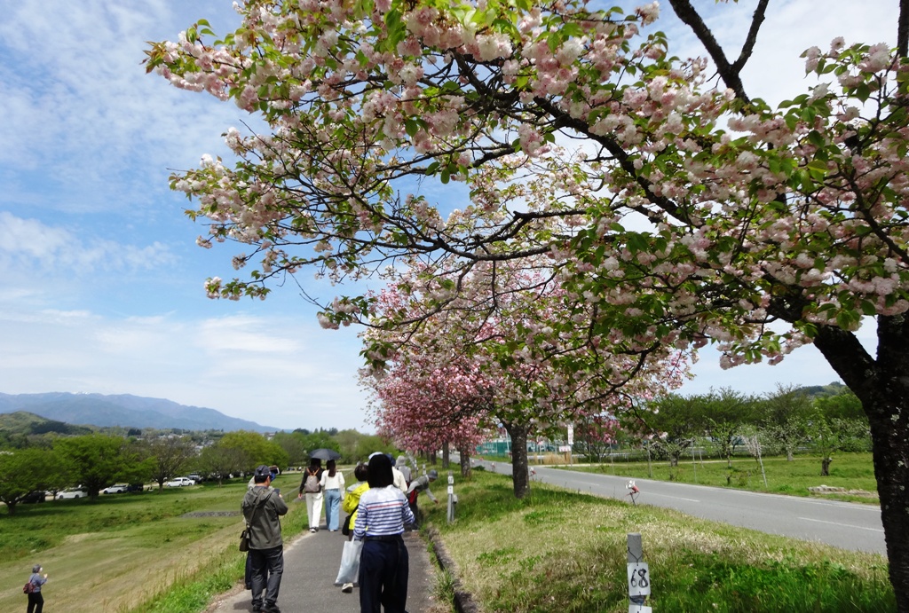 全長2Km に渡って、約200本、14種類の八重桜が並んでいます。