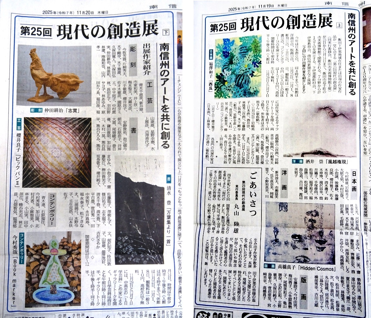 2025年第25回現代の創造展が飯田市美術博物館で11/23〜12/14まで開催されます。(クリックで大きくなります)