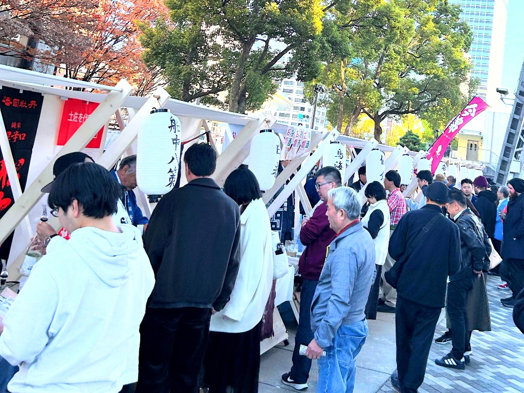 11月22日、名古屋の中心・栄の屋外広場「純米酒ウィーク 2025 in. 名古屋」会場には、各蔵のブースがずらりと並び、純米酒ファンだけでなく、普段あまり日本酒を飲まない若い世代や外国人の姿も多く見られました。