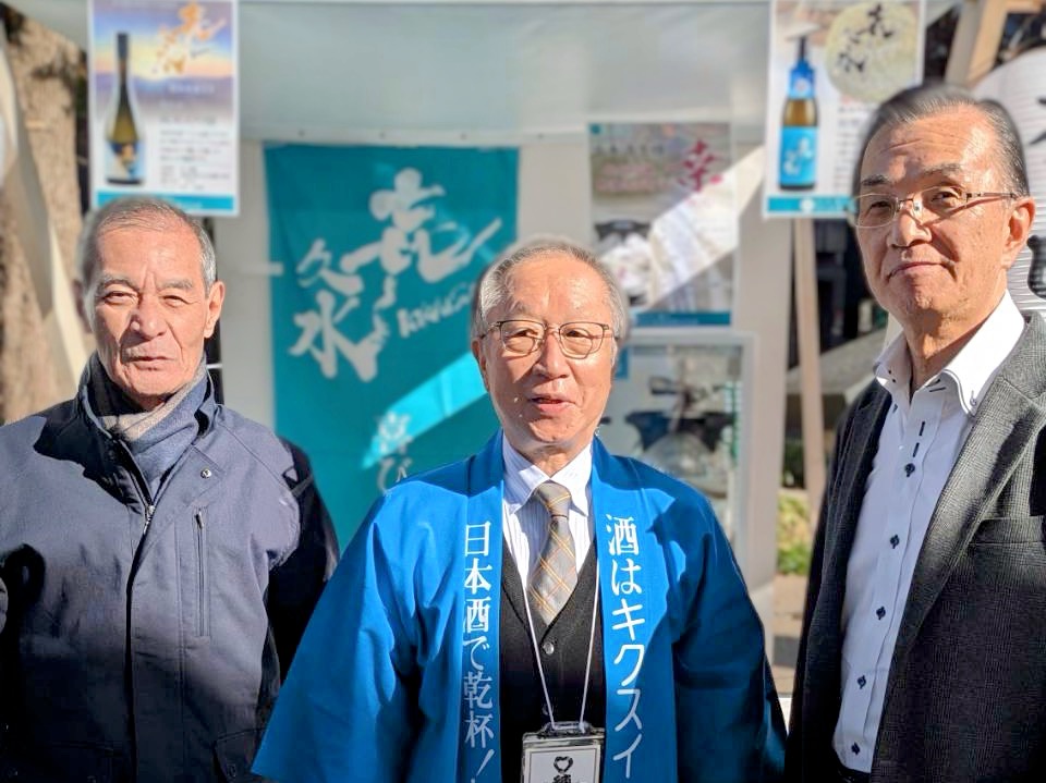 私(所澤真 高33回)の日本酒愛好家の元上司も喜久水の純米酒に舌鼓。蔵元の代表と日本酒談義が出来て大満足。